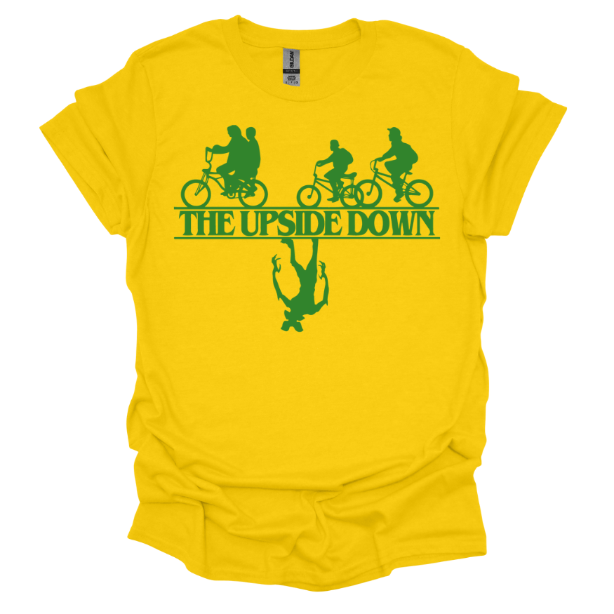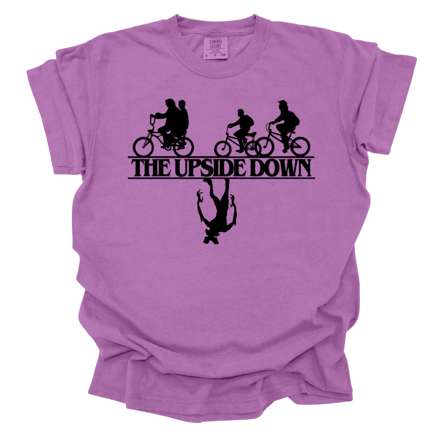 The Upside Down Gildan Soft Style or Comfort Colors T-Shirt. Please choose T-Shirt Color & Design Color and place in the Order Special Instructions Field in the Cart.